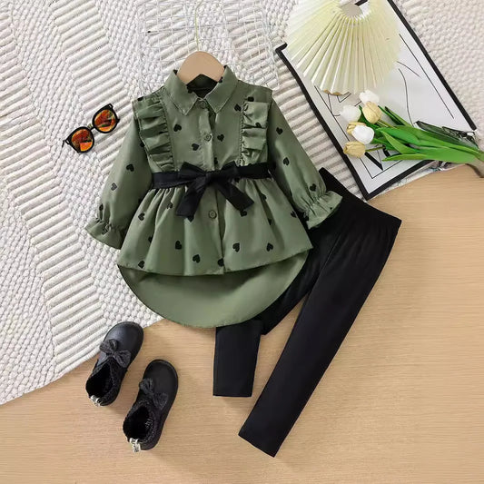 This fashionable outfit is perfect for young girls aged 1 to 8 years, combining style and comfort.