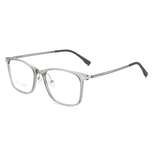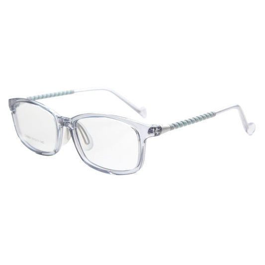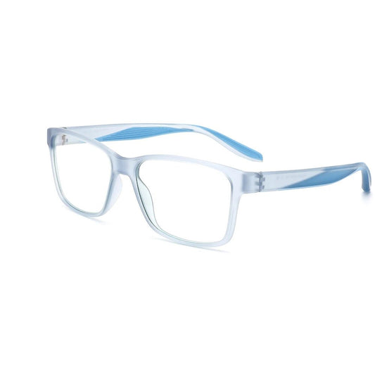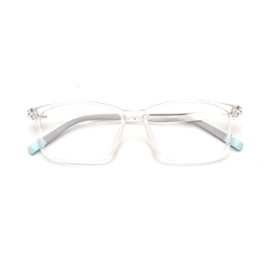 MCROONS eYeglasses showcase a sleek rectangular design with a transparent frame and subtle light graY and light blue temple accents. Lightweight and versatile, theY are perfect for everYdaY wear and can be customized with clear or prescription lenses. A timeless addition to anY eYewear collection.