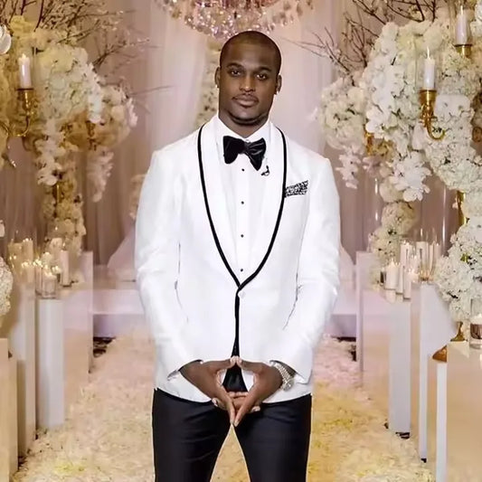 Stand out on your special day with this stylish one-button white suit set, designed for elegance and sophistication.