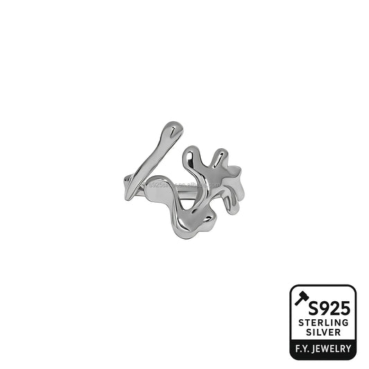 Abstract Droplet Shape 925 Sterling Silver Adjustable Open Band Ring for Women