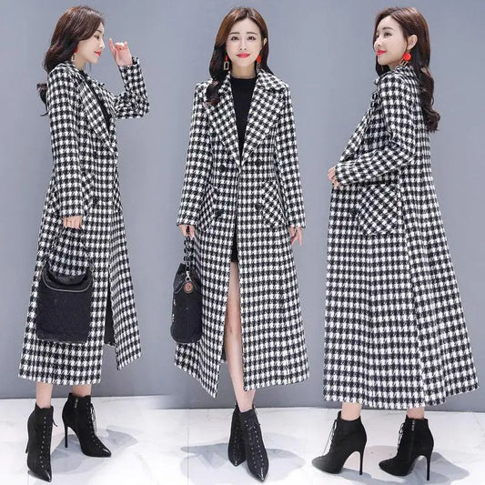 Elevate your winter wardrobe with this classy and stylish tweed coat, perfect for any occasion.