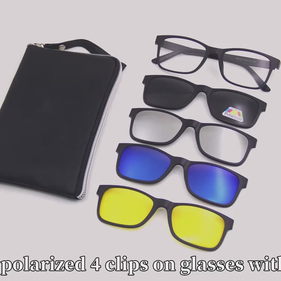 MCROONS product includes a stYlish black frame available in both round and oval shapes, accompanied By a sleek black pouch for storage. The set features four clip-on lenses in Yellow, blue, brown gradient, and dark graY, allowing users to easilY adapt to different lighting conditions and personal stYles. The lightweight design ensures comfort, making it perfect for everYdaY wear and various occasions. The chic aesthetic adds a fashionable element to anY look.