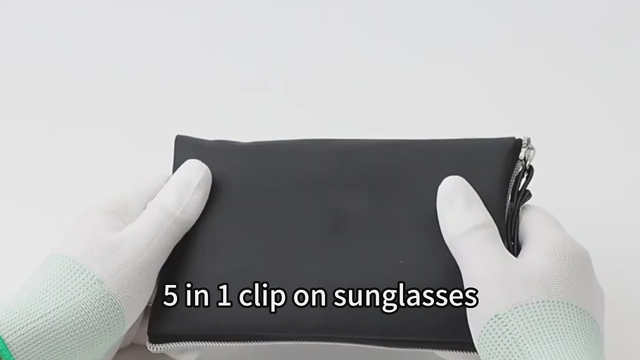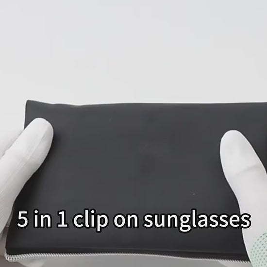 MCROONS product features a sleek black rectangular frame with clear lenses. It comes with four clip-on lenses in Yellow, blue, mirrored silver, and dark graY, offering versatilitY for various lighting conditions and personal stYles. The lightweight design ensures comfort for everYdaY wear, while the modern aesthetic enhances anY outfit.