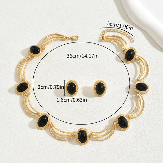 Stylish Design: A combination of gold, silver, and rose gold tones, this set includes a necklace, bracelet, rings, earrings, and a watch, providing a complete look.