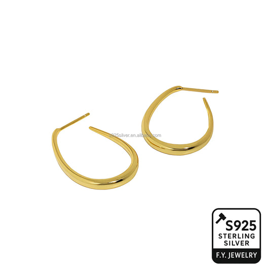 2025 Infinity Loop 925 Sterling Silver Gold Hoop Earrings – Sculptural Minimal Design Jewelry for Women