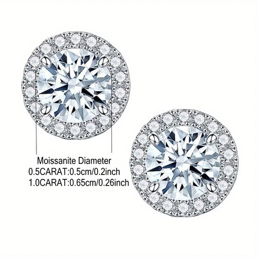 Brilliant Round Moissanite Stones: Each stud features a dazzling round moissanite diamond, known for its stunning brilliance and clarity, ensuring you shine with every wear.